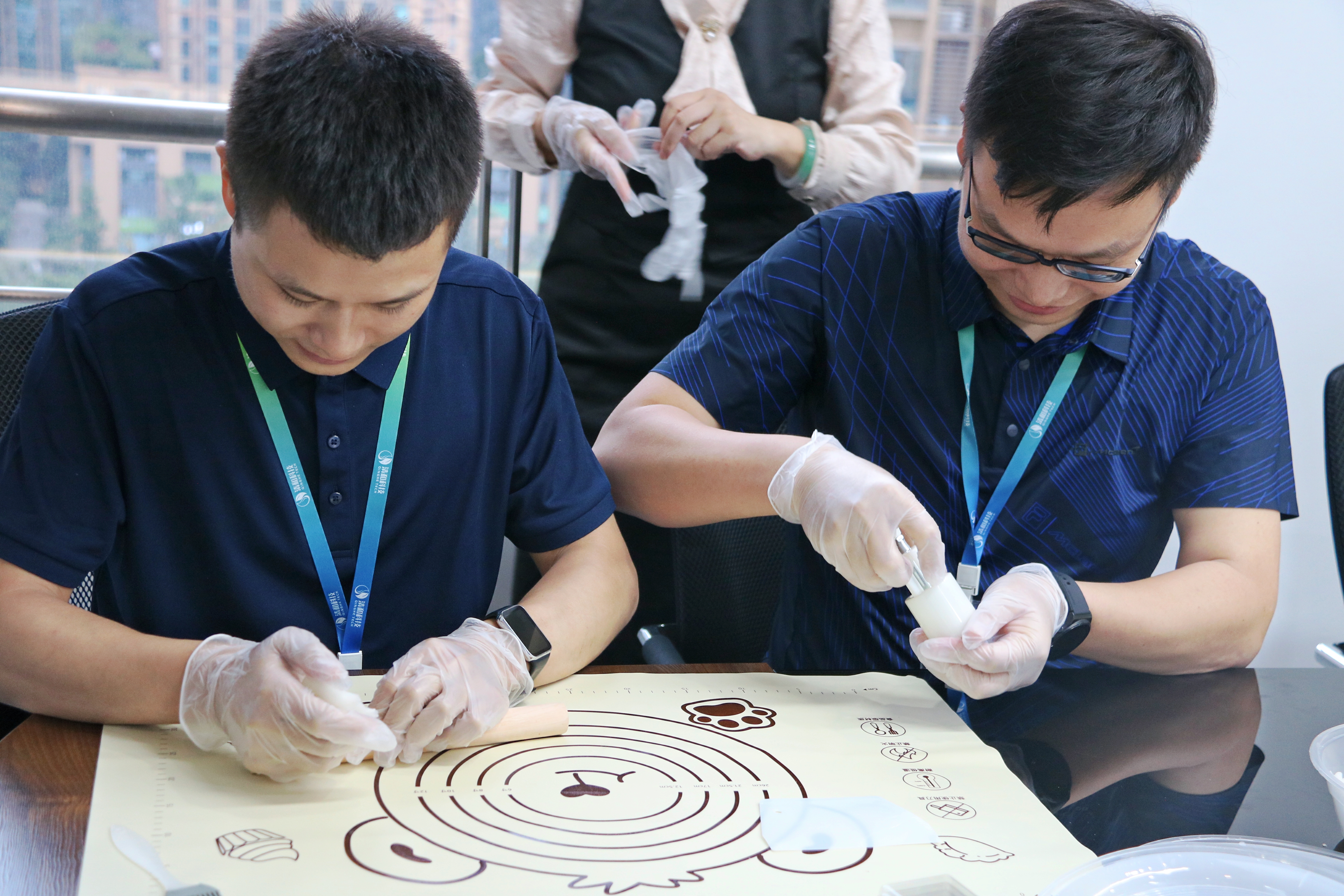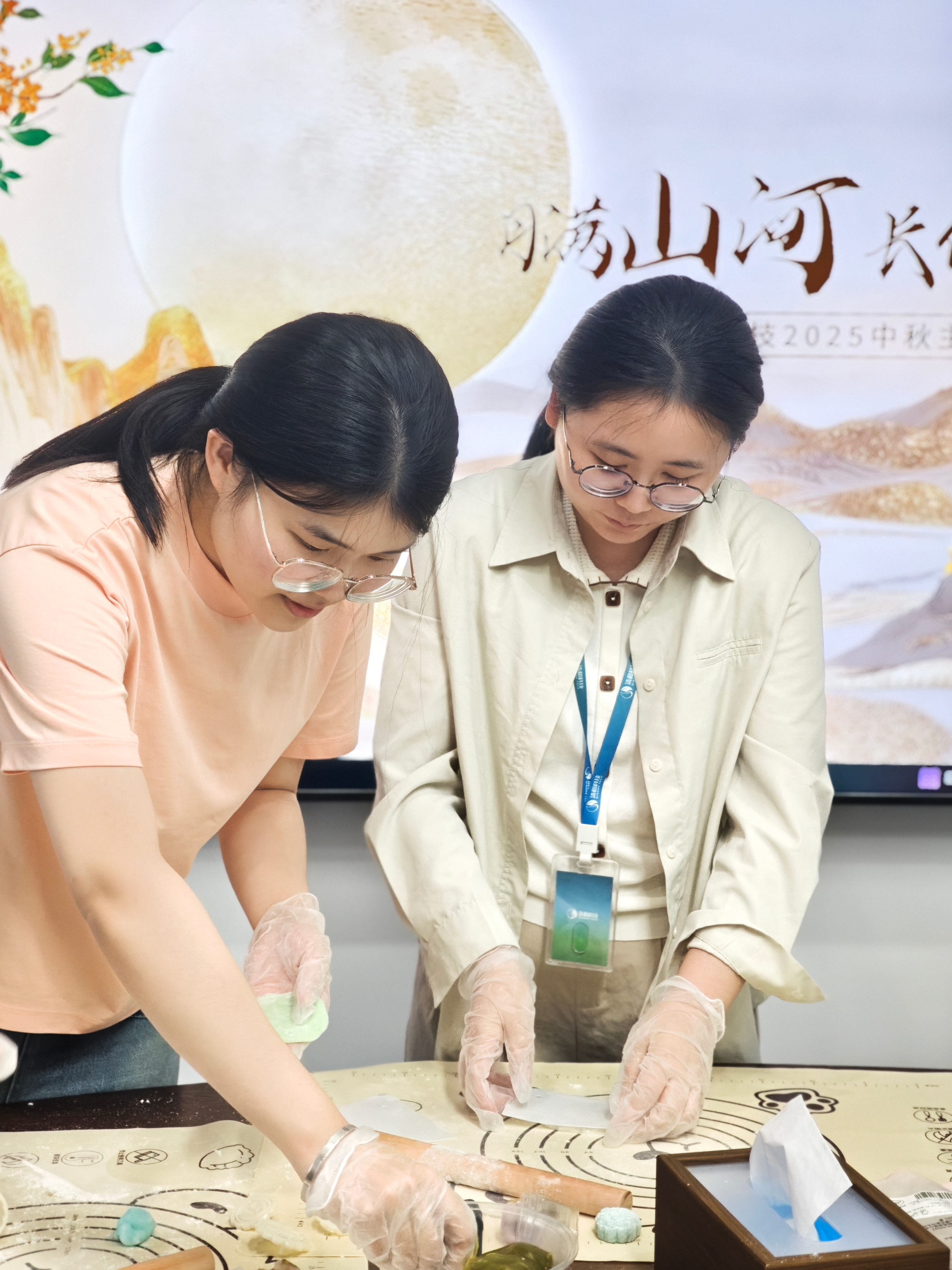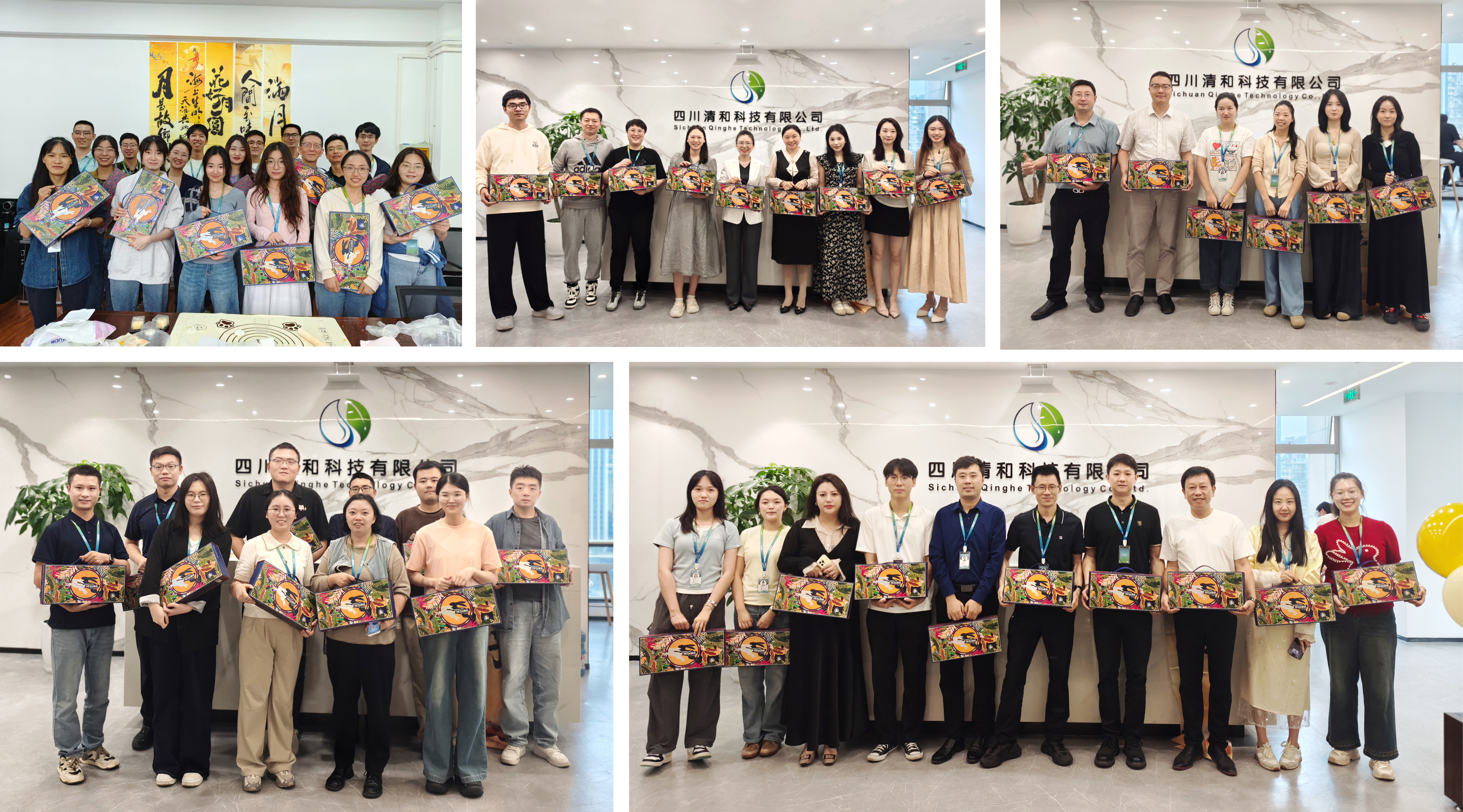 最温情的当属手作月饼环节,已经有同事提前准备好了软嫩饼皮,大家围坐操作区,有人熟练地包馅压模,做出规整的花形月饼;有人初次尝试,虽手法略显生涩,却在身边同事的指导下慢慢找到窍门,还不时通过直播镜头展示自己的“成果”。做好的月饼装盒打包,成了能带回家与家人分享的专属中秋礼。随后分发的中秋礼盒装满了西华大学河湖中心的心意与祝福。