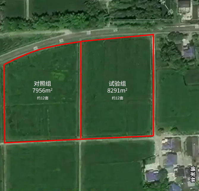 倒伏面积(红框部分):对照组11.4%,试验组2.5%