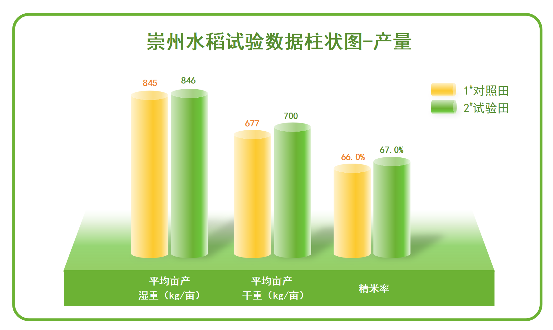 最终结果达到预期:试验田平均亩产(干重)达700kg,较对照田增3.4%;精米率由66.0%增至67.0%,提升1%;病坏粒率由1.8%降至1.0%;更关键的是,收割期土壤氮、磷、钾含量分别提升6.9%、4.4%、2.7%,并且航拍显示试验组倒伏率更低。